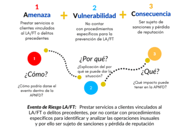 Como segunda mención, recordemos que el riesgo es definido como “una contingencia”, es decir, la posibilidad o probabilidad de que algo suceda o no. Ahora bien, algunos de los riesgos que se pueden presentar por la ausencia de una buena gestión de riesgos de LA/FT son principalmente, riesgo reputacional, riesgo operacional, riesgo legal, entre otros.