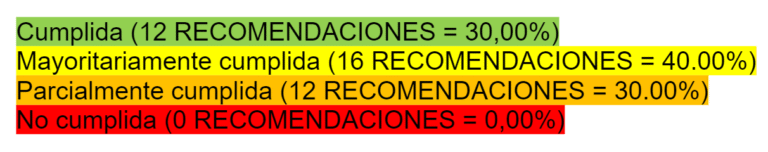 El seguimiento a las recomendaciones del 2002, no fueron satisfactorias, y se sumaron las siguientes conclusiones: